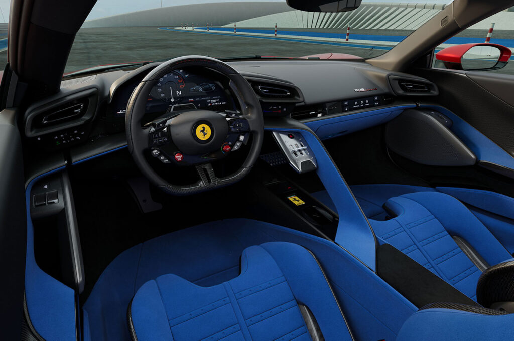 250 km/s hızda 415 kilogramlık toplam yere basma kuvveti, SF90 Stradale’e göre 25 kilogram artış sunarken, güç aktarma organları ve frenler için soğutma kapasitesinde de yüzde 15 iyileşme sağladı. F80’den ilham alan entegre vites geçiş kapısı ile merkezi yelken motifi, bileşenlerin konumlandırmasını geliştiriyor ve erişilebilirliğini artırıyor. Mekanik butonlarla donatılmış yeni direksiyon simidi, sürüş deneyimini bir üst seviyeye taşıyor ve en güncel Ferrari direksiyonlarının yüksek işlevselliğini koruyor. Son olarak, yeni nesil HMI sistemi, otomobille etkileşimi daha basit ve sezgisel hale getiriyor.