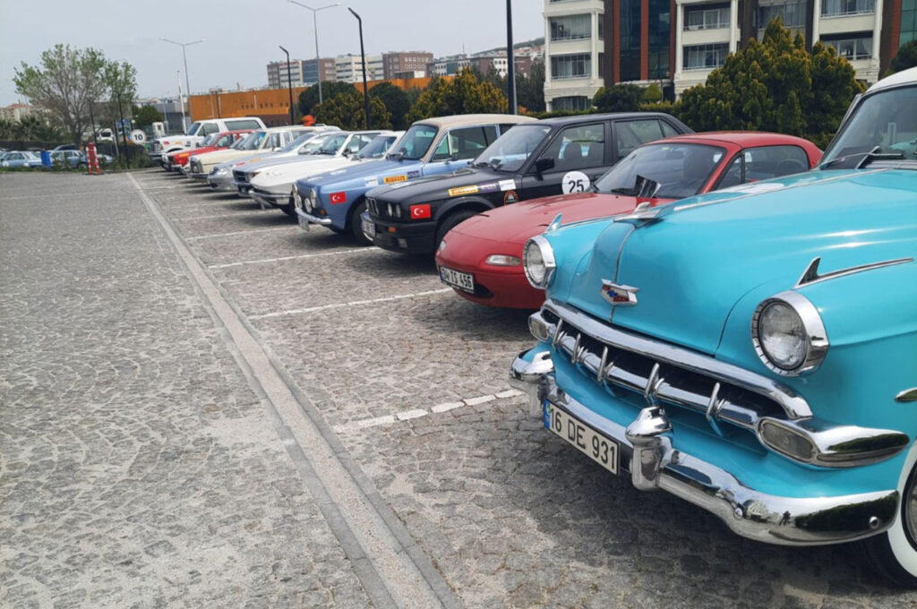 Klasik otomobillerin yağışsız fakat sert rüzgarların olduğu bir havada gerçekleştirdikleri şehir içi sürüşü Çanakkale halkından ilgi gördü.