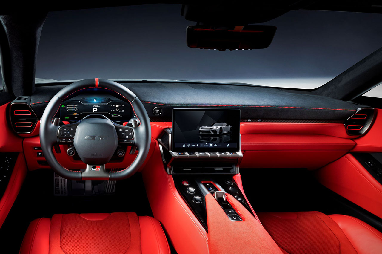 GR GT’nin kabin tasarımı, profesyonel ve amatör sürücülerin günlük kullanımlarda ve pist sürüşlerinde tüm ihtiyaçlarını karşılayacak şekilde yapılmış. Sürüş pozisyonu ve görüş açıları önceliklendirilerek kabindeki diğer unsurlar yerleştirilmiş. İdeal sürüş pozisyonu sayesinde, her türlü sürüş koşulunda yeterli görüş açısının elde edilmesi sağlanmış. Aynı zamanda kabindeki kullanım kolaylığına da dikkat edilerek, sürüşle ilgili düğmeler direksiyonun yakınına yerleştirilmiş ve sezgisel kullanım için konumları ve şekilleri özenle belirlenmiş. Pist sürüşü sırasında dahi kolay görsel algılama sağlanması amacıyla göstergelere de büyük önem verilmiş. Vites yükseltme ve vites seçimi göstergeleri gibi bilgi ekranlarının genişliği, yüksekliği ve konumu titizlikle belirlenmiş.